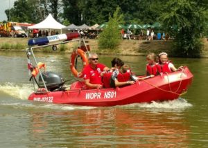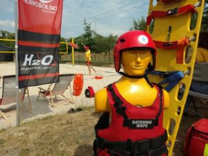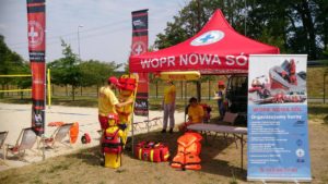 Podczas festynu rodzinnego nowosolskiej Gedii, mieliśmy swoje stoisko, które było chętnie odwiedzane przez rodziny z dziećmi. Mielimy ze sobą fantomy, na których uczyliśmy pierwszej pomocy oraz łódź ratowniczą, którą można było się przepłynąć.