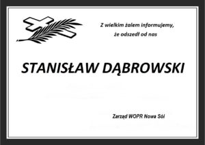 W dniu 28.11.2020 r. w wieku 76 lat odszedł na wieczną wachtę wieloletni członek i Prezes Oddziału WOPR Nowa Sól, ratownik, wychowawca dzieci i młodzieży, instruktor kajakarstwa, społeczny propagator aktywnego i bezpiecznego wypoczynku nad wodą. Związany z WOPR-em od 1973 r. Cześć jego pamięci. W imieniu własnym i Oddziału WOPR Nowa Sól składam wyrazy współczucia na ręce rodziny i najbliższych – Prezes WOPR WOPR Nowa Sól Daniel Jachacy. Pogrzeb odbędzie się w dniu 07.12.2020 r. o godz. 11:00 na cmentarzu przy ul. Wandy w Nowej Soli.